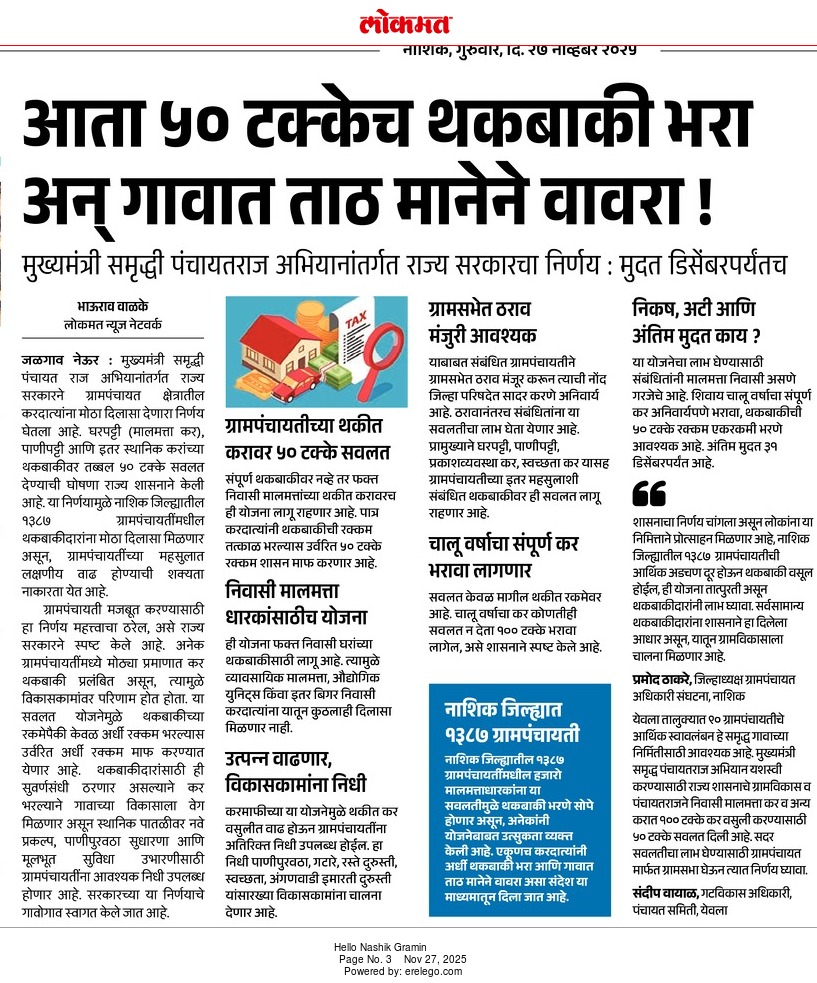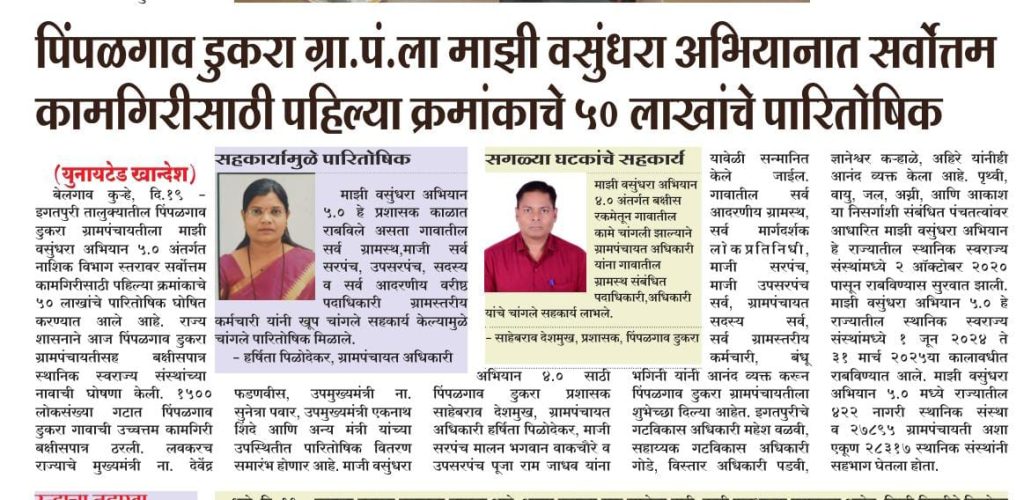 महाराष्ट्र शासनाच्या “मुख्यमंत्री समृद्ध पंचायतराज अभियान” या उपक्रमाच्या माध्यमातून शाश्वत विकास ध्येये २०३० च्या दिशेने ग्रामीण विकासाचा नाव अध्याय सुरू होत आहे. हे अभियान पारदर्शक व तत्पर प्रशासन, सामाजिक न्याय, आरोग्य, शिक्षण, पाणीपुरवठा, शेती, पर्यावरण संवर्धन, महिला व बालकल्याण, उपजीविका विकास आणी लोकसहभाग यांसारख्या ग्रामीण विकासाच्या प्रत्येक क्षेत्राला स्पर्श करणारे आहे.