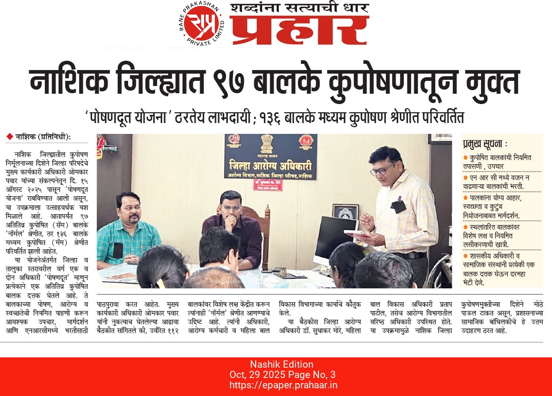 - राष्ट्रीय आरोग्य अभियान, जिल्हा-नाशिक कंत्राटी पदभरती प्रक्रिया. सविस्तर जाहिरात क्र.०७/२०२५