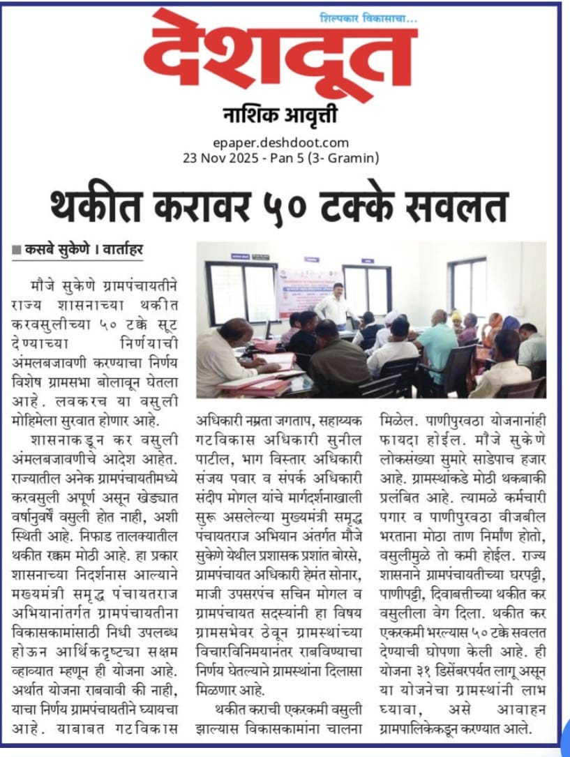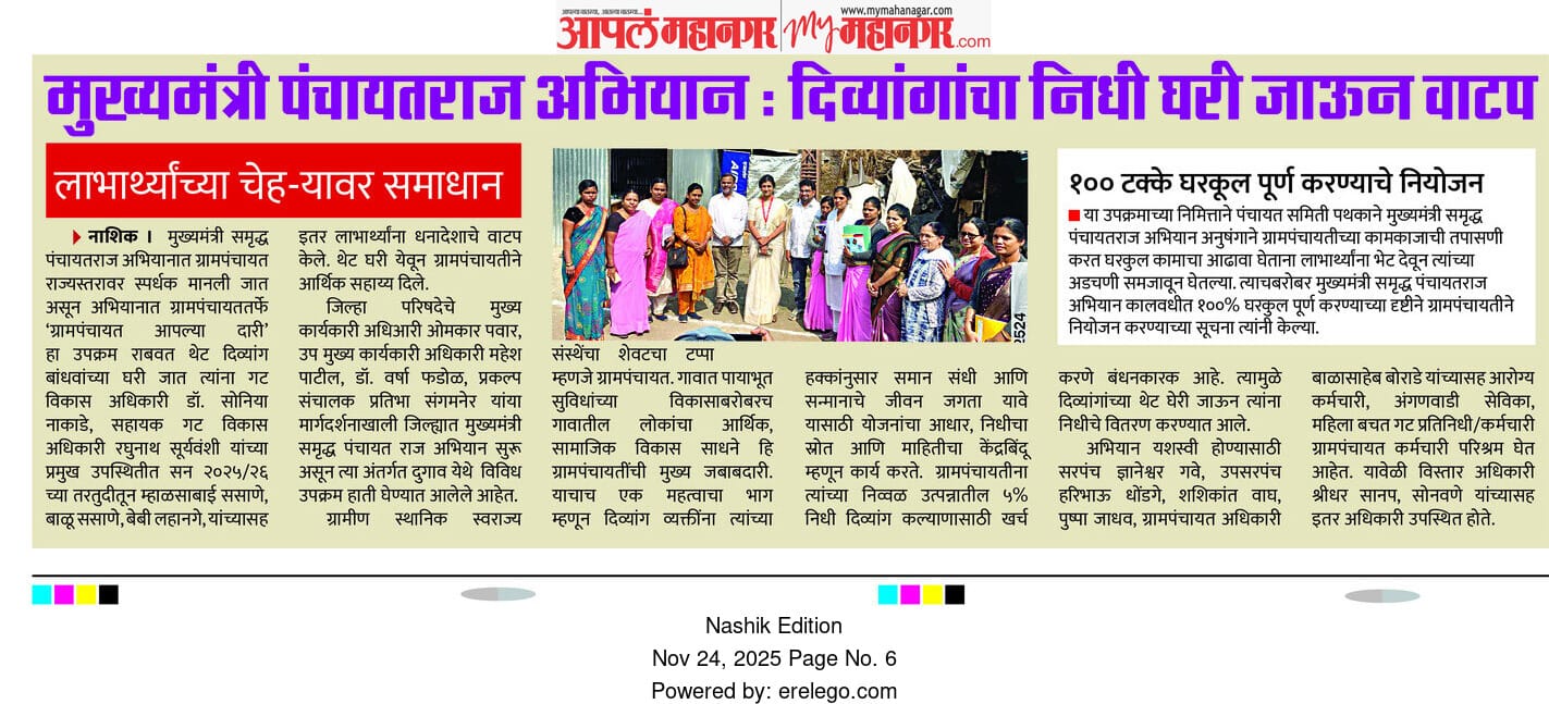 या अभियानामुळे नाशिक जिल्ह्यातील प्रत्येक गावात सर्वांगीण विकास सध्या होईल. “एकही गांव मागे राहणार नाही” ही भूमिका यशस्वी करण्यासाठी जिल्हा परिषद, पंचायत समित्या, ग्रामपंचयाती तसेच स्थानिक संस्था व नागरिक यांचे सक्रिय सहकार्य आवश्यक आहे.